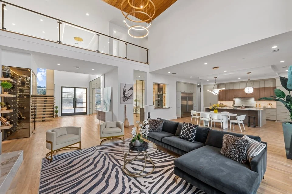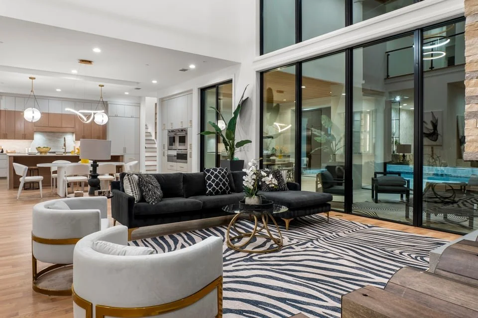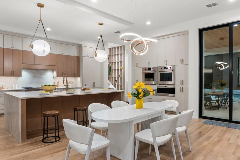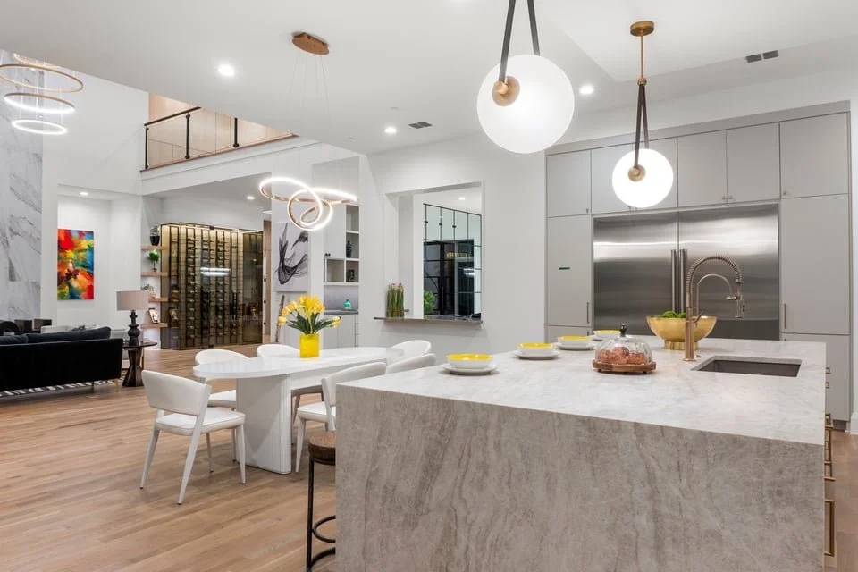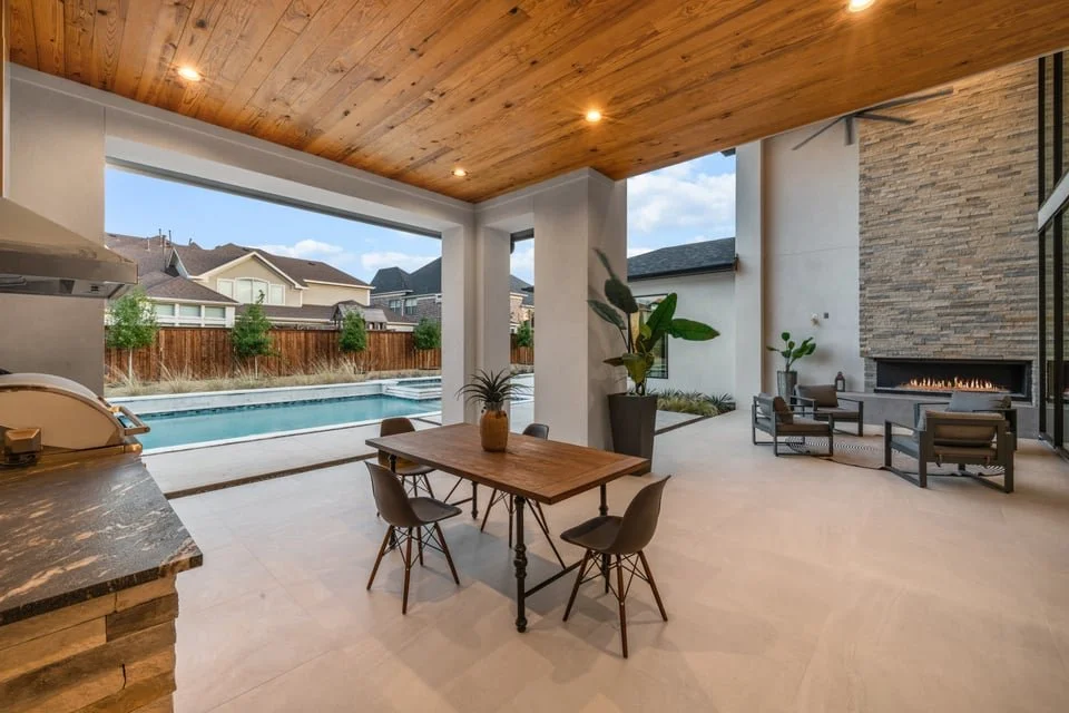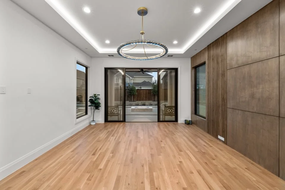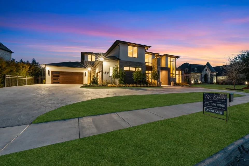Ron Davis Custom Homes presents: Discover an exquisite masterpiece of contemporary luxury and sophisticated design, nestled in the heart of Frisco, Texas. Enter through grand modern iron French doors into a breathtaking two-story foyer, an architectural marvel of elegance and tranquility. The vestibule leads to the refined dining room, seamlessly connected to a chic wet bar and a convenient butler’s pantry, perfect for both intimate dinners and grand celebrations. Step beyond the vestibule and wet bar to the expansive family room, where a striking transitional-modern fireplace highlighted by custom designer tile and dry-stack stone detailing, centered around an elegant linear gas fireplace creates a warm and inviting focal point. This space flows effortlessly into the gourmet kitchen and informal dining area, a true chef's delight with high-end appliances and elegant finishes, ideal for family gatherings and entertaining.